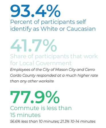 City staff helped to distribute the housing survey via social media and through other partner organizations, including the Steering Committee members and their networks. Printed versions, both in English and Spanish, were made available at City Hall, the library, and other strategic locations throughout the community, including housing service providers. The North Iowa Corridor EDC also created a special eNewsletter for their members to encourage major employers to solicit participation from their workforce - both residents and those commuting into Mason City for employment. Participants were asked to provide their home postal zip codes to add further context to the responses received.